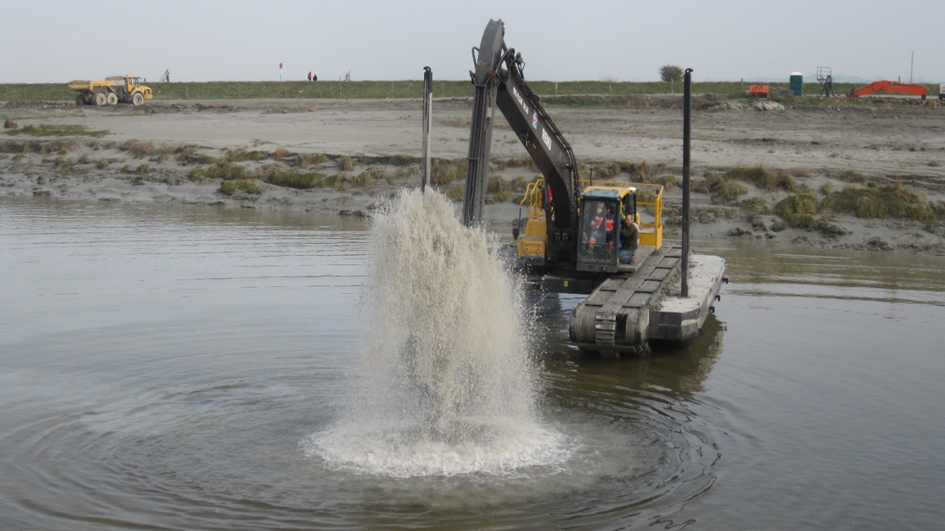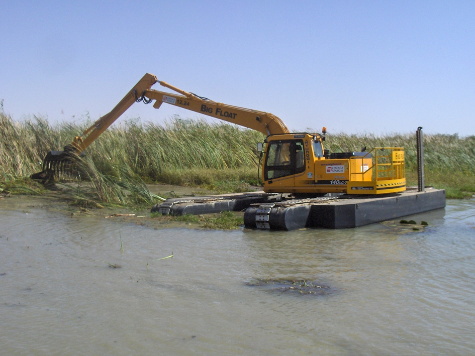 Les pelles amphibies BIG FLOAT peuvent recevoir différents modèles de pontons en fonction des besoins du chantier, offrant davantage de flottabilité et de stabilité. Elles s’adaptent ainsi à une grande variété de terrains difficiles et peuvent se déplacer rapidement, avec une excellente maniabilité, dans les cours d’eau étroits, les marécages et les zones humides.